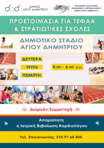 ✔️ Συνεχίζεται το πρόγραμμα της δωρεάν προετοιμασίας για υποψήφιες και υποψήφιους ΤΕΦΑΑ και στρατιωτικών σχολών, από τον Οργανισμό Πολιτισμού Αθλητισμού