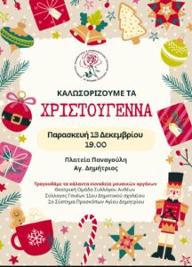 Στο πλαίσιο των εορταστικών εκδηλώσεων "Μια Πόλη - Μια Γιορτή", για τα Χριστούγεννα και την Πρωτοχρονιά, ο Δήμος Αγίου Δημητρίου