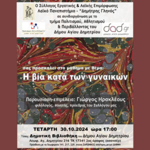 Το Τμήμα Πολιτισμού Αθλητισμού & Περιβάλλοντος σε συνεργασία με τον Σύλλογο Εργατικής & Λαϊκής Επιμόρφωσης Λαϊκό Πανεπιστήμιο - "Δημήτρης
