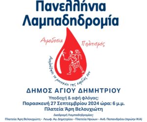 Ο Δήμος Αγίου Δημητρίου συμμετέχει στην 22η Πανελλήνια Λαμπαδηδρομία Εθελοντών Αιμοδοτών, στο πλαίσιο της οποίας θα υποδεχτεί στην πόλη τη