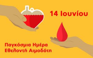 Τιμάμε σήμερα την Παγκόσμια Ημέρα Εθελοντή Αιμοδότη, στέλνοντας ένα μήνυμα ευγνωμοσύνης στους εθελοντές και τις εθελόντριες αιμοδότες και αιμοδότριες, που