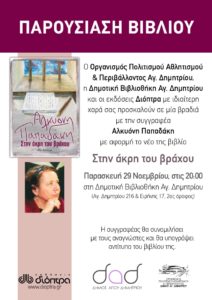 Με αφορμή το νέο βιβλίο της Αλκυόνης Παπαδάκη, "Στην άκρη του βράχου", ο Οργανισμός Πολιτισμού, Αθλητισμού & Περιβάλλοντος, η Δημοτική