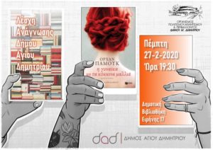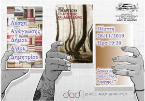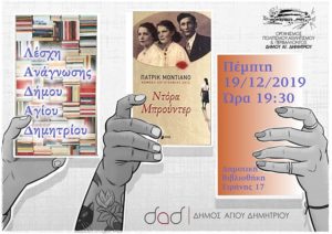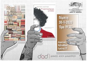 > Η 4η συνάντηση της Λέσχης Ανάγνωσης του Δήμου Αγίου Δημητρίου θα πραγματοποιηθεί την Πέμπτη 27 Φεβρουαρίου 2020, ώρα 19:30, στη