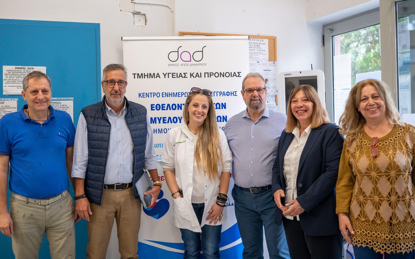Ο Δήμαρχος Αγίου Δημητρίου Στέλιος Μαμαλάκης και τα στελέχη του Τμήματος  Υγείας και Πρόνοιας εγκαινίασαν  σήμερα Πέμπτη 2/10/2025, στο χώρο των Δημοτικών Ιατρείων επί της οδού Θεσσαλίας 10, τη λειτουργία του Κέντρου Ενημέρωσης και Εγγραφής Εθελοντών Δοτών Μυελού των Οστών. Η λειτουργία του Κέντρου είναι αποτέλεσμα συστηματικής και σταθερής συνεργασίας με το Σύλλογο Όραμα Ελπίδας.