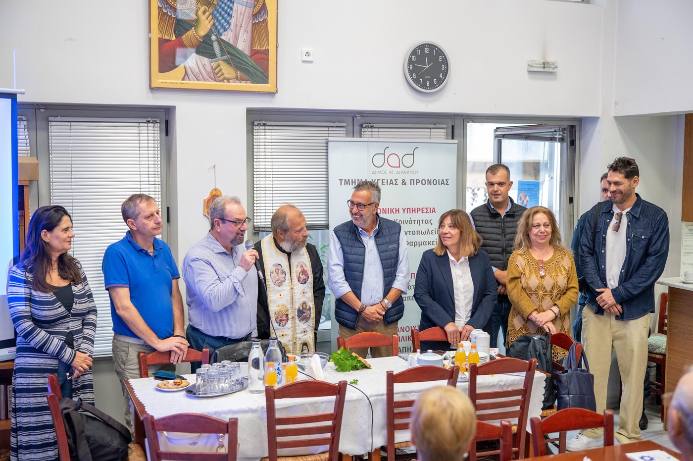 Τα εγκαίνια πραγματοποιήθηκαν από το Δήμαρχο Στέλιο Μαμαλάκη, παρουσία του Αντιδημάρχου Κοινωνικής Πολιτικής και Ευάλωτων Ομάδων Θανάση Μπαμπάνα, της εκπροσώπου του Συλλόγου Όραμα Ελπίδας Κάτιας Χατζηπέτρου, του Προέδρου του Δημοτικού Συμβουλίου Γιώργου Κονδύλη, των Αντιδημάρχων Γεώργιου Κάππου, Μιχάλη Καραϊσκάκη,  Ευάγγελου Μπούρη, Βασιλικής Βαζαίου, Γιώργου Ταμπακόπουλου, της Εντεταλμένης Δημοτικής Συμβούλου Αλέκας Γιαννοπούλου, της Φαρμακοποιού των Δημοτικών Ιατρείων Μ. Μπαρμπάτσαλου , εκπροσώπων  του Αστυνομικού Τμήματος Αγίου Δημητρίου και της Δημοτικής Αστυνομίας, μελών των ΚΑΠΗ και δημοτών. Στα εγκαίνια παραβρέθηκε και ο ηθοποιός Γιάννης Σπαλιάρας ο οποίος είναι εθελοντής δότης και κάτοικος Αγίου Δημητρίου.