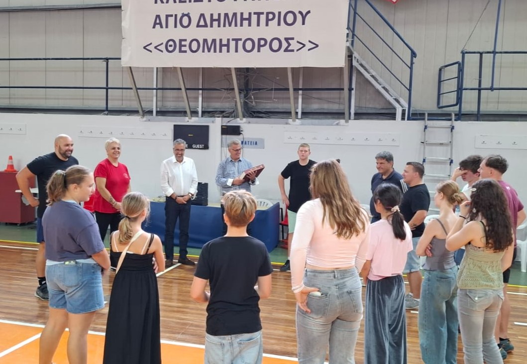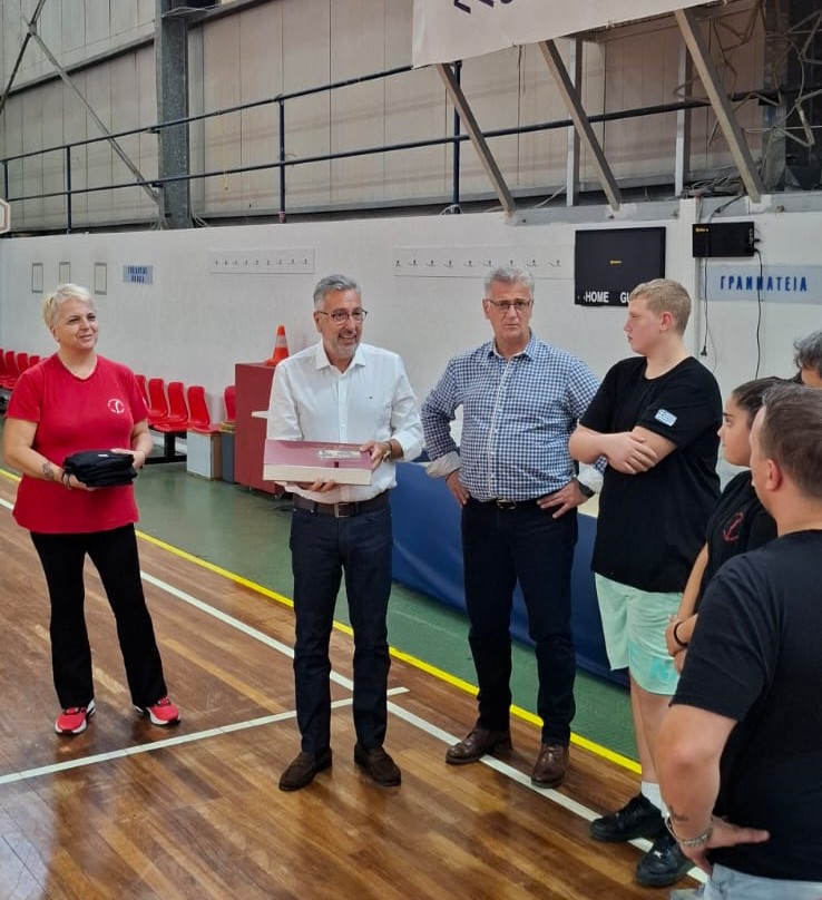 Χθες Τετάρτη 29 Οκτωβρίου, ο Δήμαρχος Αγίου Δημητρίου, Στέλιος Μαμαλάκης, συνοδευόμενος από τον Εντεταλμένο Δημοτικό Σύμβουλο σε θέματα Αθλητισμού, Παντελή Ζωΐλη, επισκέφθηκε το κλειστό γυμναστήριο «Θεομήτορος» όπου προπονείται η ομάδα. Ο κ. Μαμαλάκης είχε την ευκαιρία να συνομιλήσει με τους αθλητές και να ενημερωθεί για το πρόγραμμα της επίσκεψης τους.
