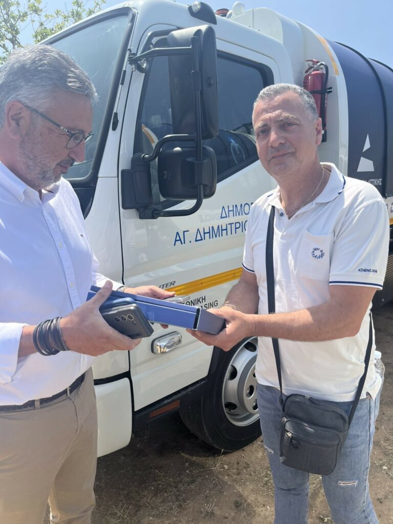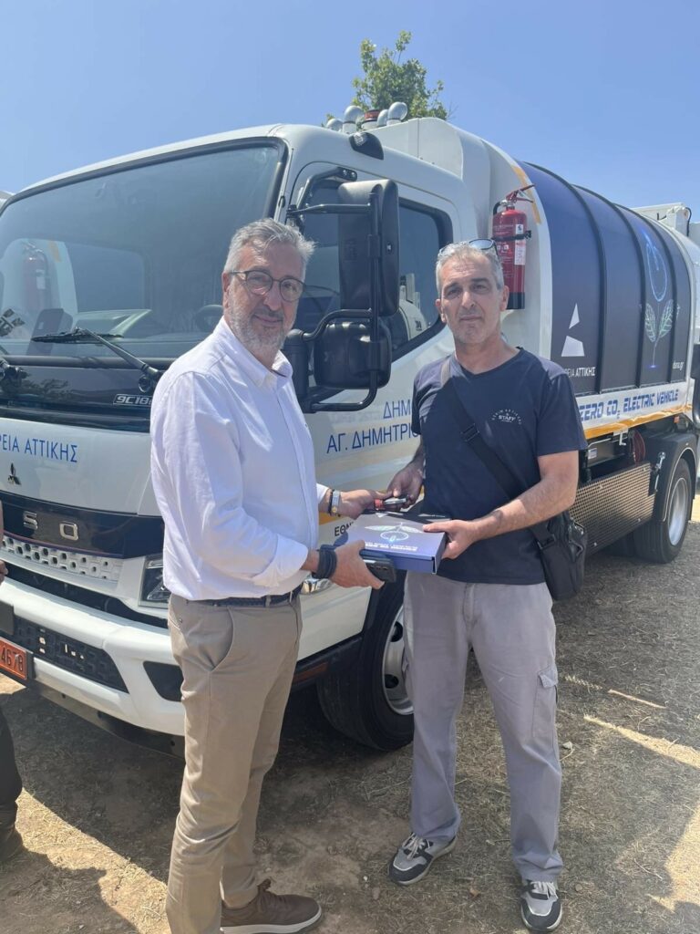 Ο Δήμαρχος Αγίου Δημητρίου παρέλαβε την Παρασκευή 6 Ιουνίου, δύο νέα μικρότερα σε μέγεθος και πιο ευέλικτα ηλεκτρικά απορριμματοφόρα αποκομιδής βιοαποβλήτων, σε σχετική εκδήλωση που έγινε στο Μητροπολιτικό Πάρκο «Αντώνης Τρίτσης», στο Ίλιον, παρουσία φορέων της Τοπικής Αυτοδιοίκησης και εκπροσώπων της περιβαλλοντικής κοινότητας. Η Περιφέρεια Αττικής και ο ΕΔΣΝΑ, παρέδωσαν σε Δήμους νέα ηλεκτρικά απορριμματοφόρα οχήματα για την περισυλλογή βιοαποβλήτων καθώς και κλαδοτεμαχιστές, με στόχο την αναβάθμιση της διαχείρισης των απορριμμάτων του Λεκανοπεδίου.