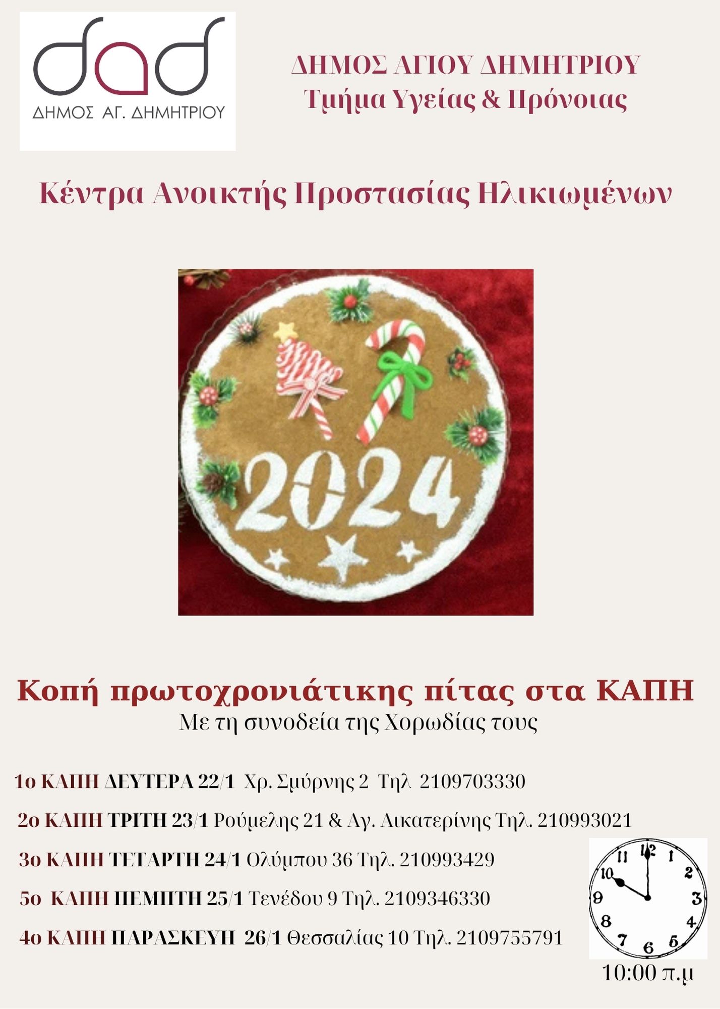 Kοπή της Πρωτοχρονιάτικης Πίτας στα ΚΑΠΗ του Δήμου