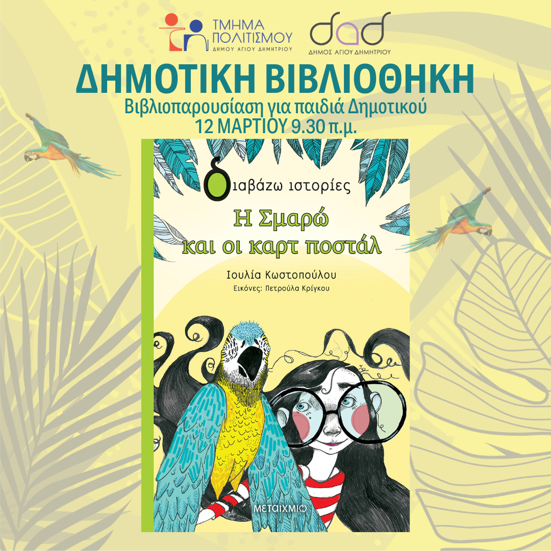ΠΑΡΟΥΣΙΑΣΗ ΒΙΒΛΙΟΥ ΔΗΜΟΤΙΚΗ ΒΙΒΛΙΟΘΗΚΗ Με την παρουσία του 3ου Δημοτικού σχολείου Αγίου Δημητρίου Date 12 Μαρ 2025 Expired! Time 9:30 am - 1:00 pm Location Δημοτική Βιβλιοθήκη Category ΔΗΜΟΤΙΚΗ ΒΙΒΛΙΟΘΗΚΗΠΟΛΙΤΙΣΜΟΣ