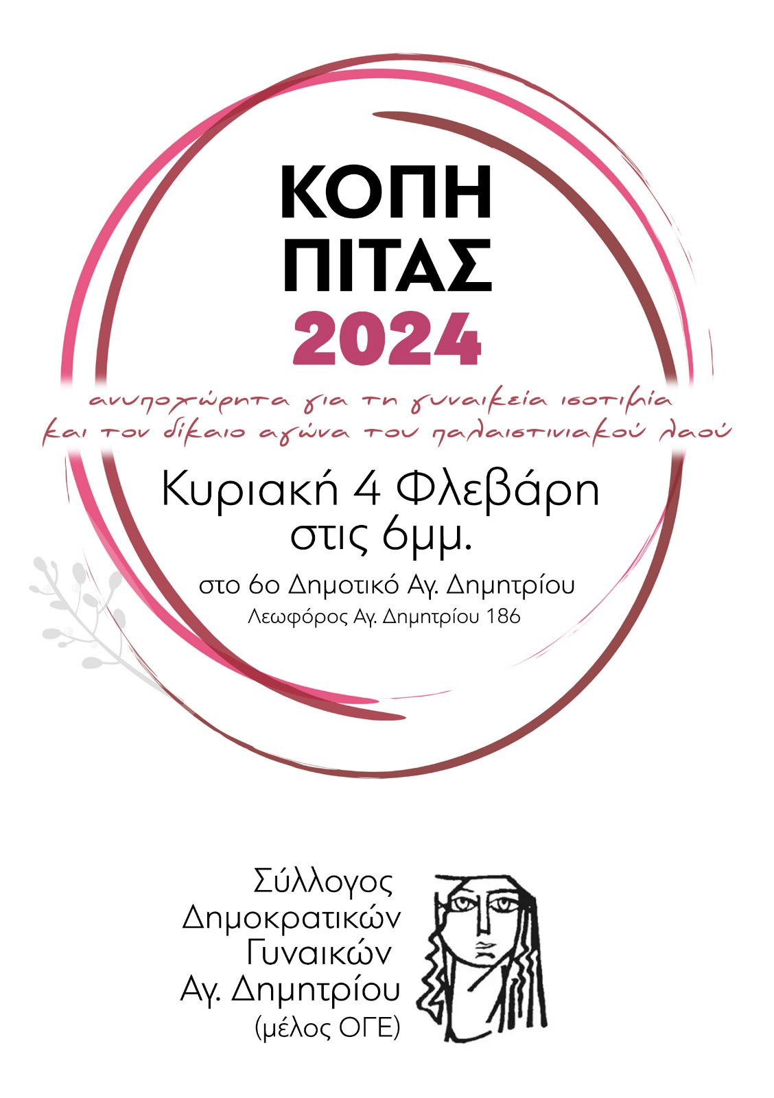 Πρόσκληση Συλλόγου Δημοκρατικών Γυναικών Αγίου Δημητρίου στην κοπή της πρωτοχρονιάτικης πίτας