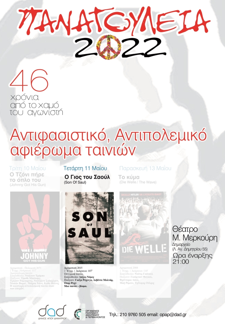 Προβολή ταινίας • “Ο γιος του Σαούλ” Date 11 Μάιος 2022 Expired! Time 9:00 pm Location Δημοτικό Θέατρο "Μελίνα Μερκούρη" • Αγ. Δημητρίου 55
