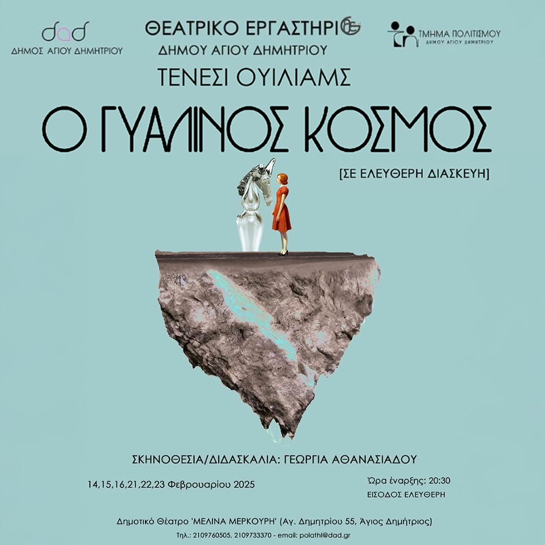 ΘΕΑΤΡΙΚΗ ΠΑΡΑΣΤΑΣΗ -ΓΥΑΛΙΝΟΣ ΚΟΣΜΟΣ- ΔΗΜΟΤΙΚΟ ΘΕΑΤΡΟ ΜΕΛΙΝΑ ΜΕΡΚΟΥΡΗ