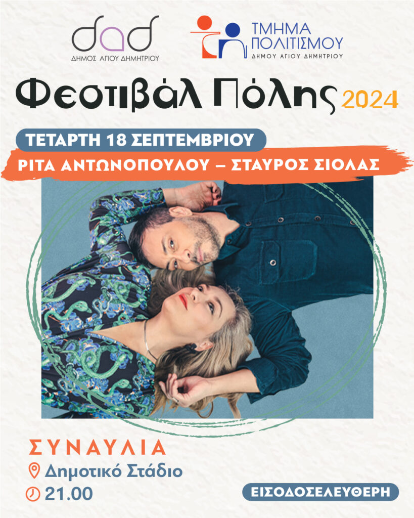 Φεστιβάλ Πόλης: Συναυλία Ρίτας Αντωνοπούλου & Σταύρου Σιόλα την Τετάρτη 18/9
