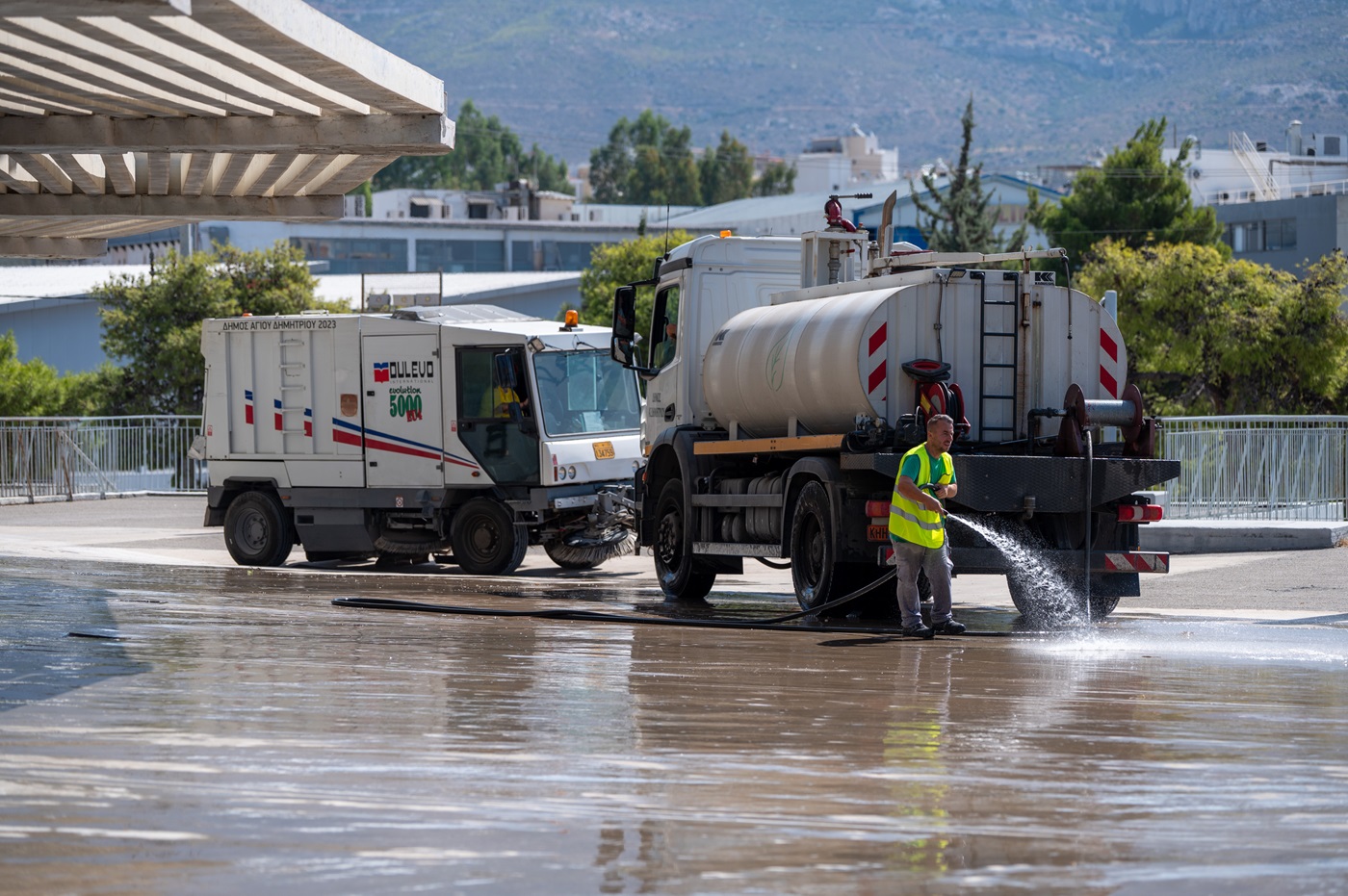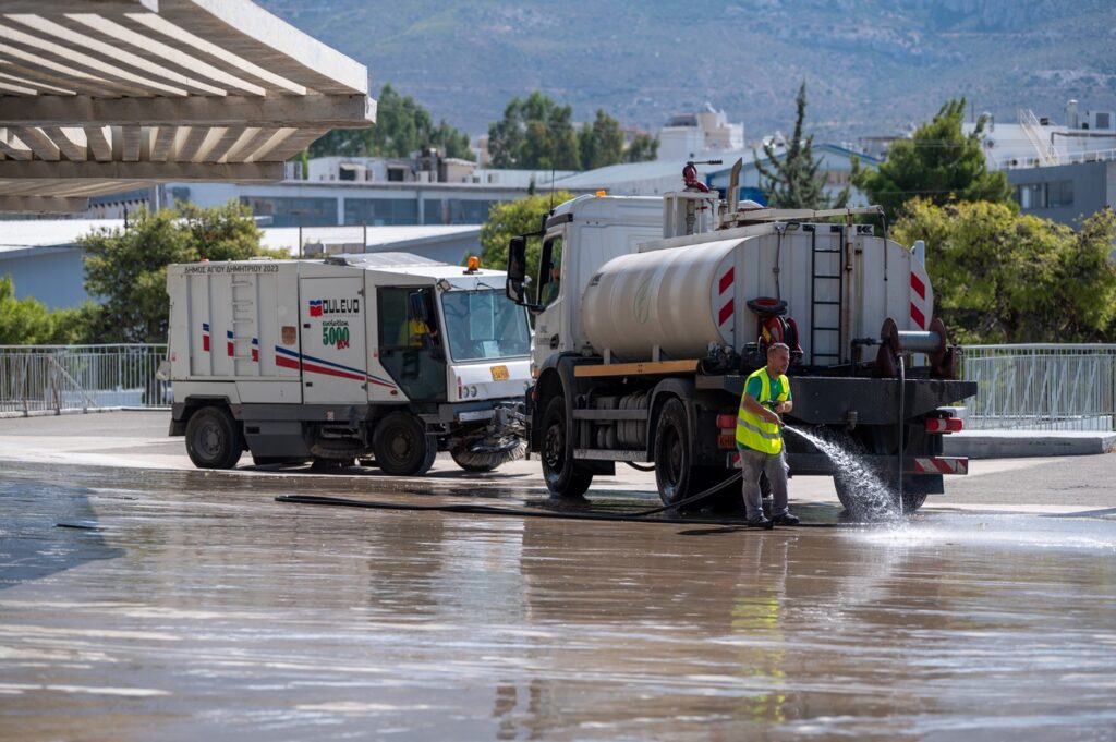 - Καθαρίστηκαν με σάρωθρο και πλύθηκαν με την υδροφόρα του Δήμου σχολικά προαύλια