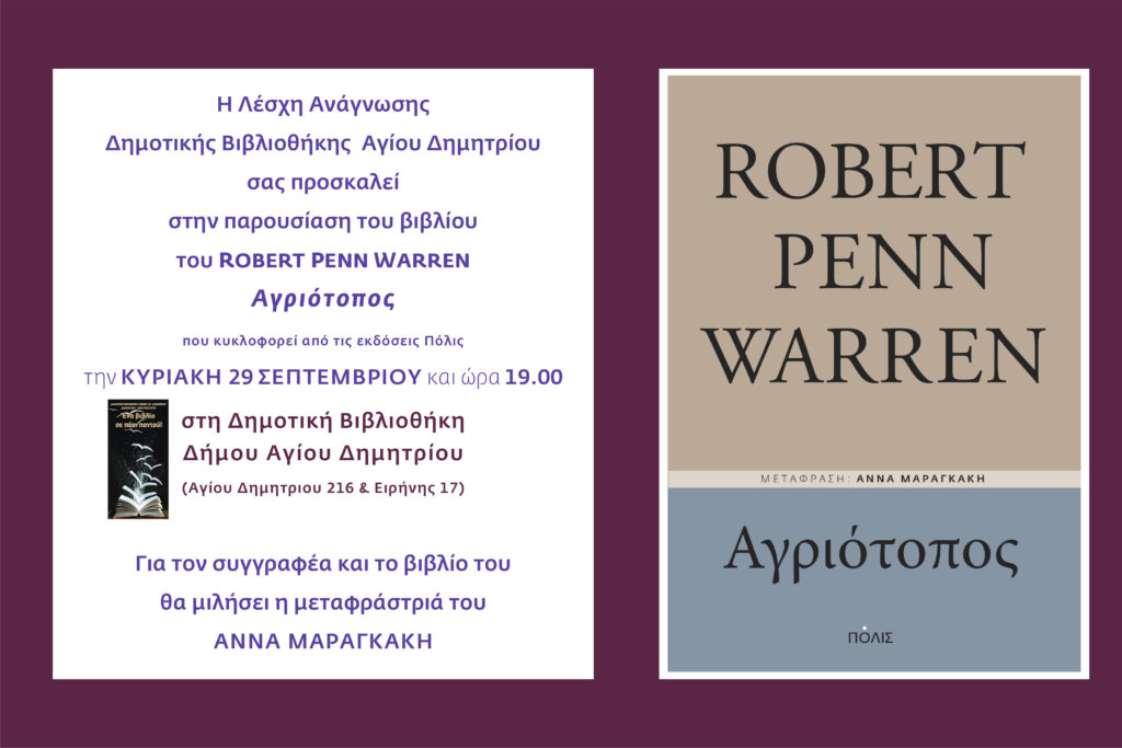 29/9 παρουσίαση βιβλίου Αγριότοπος στη Λέσχη Ανάγνωσης της Δημοτικής Βιβλιοθήκης Βιβλιοθήκη 10 Σεπτεμβρίου, 2024