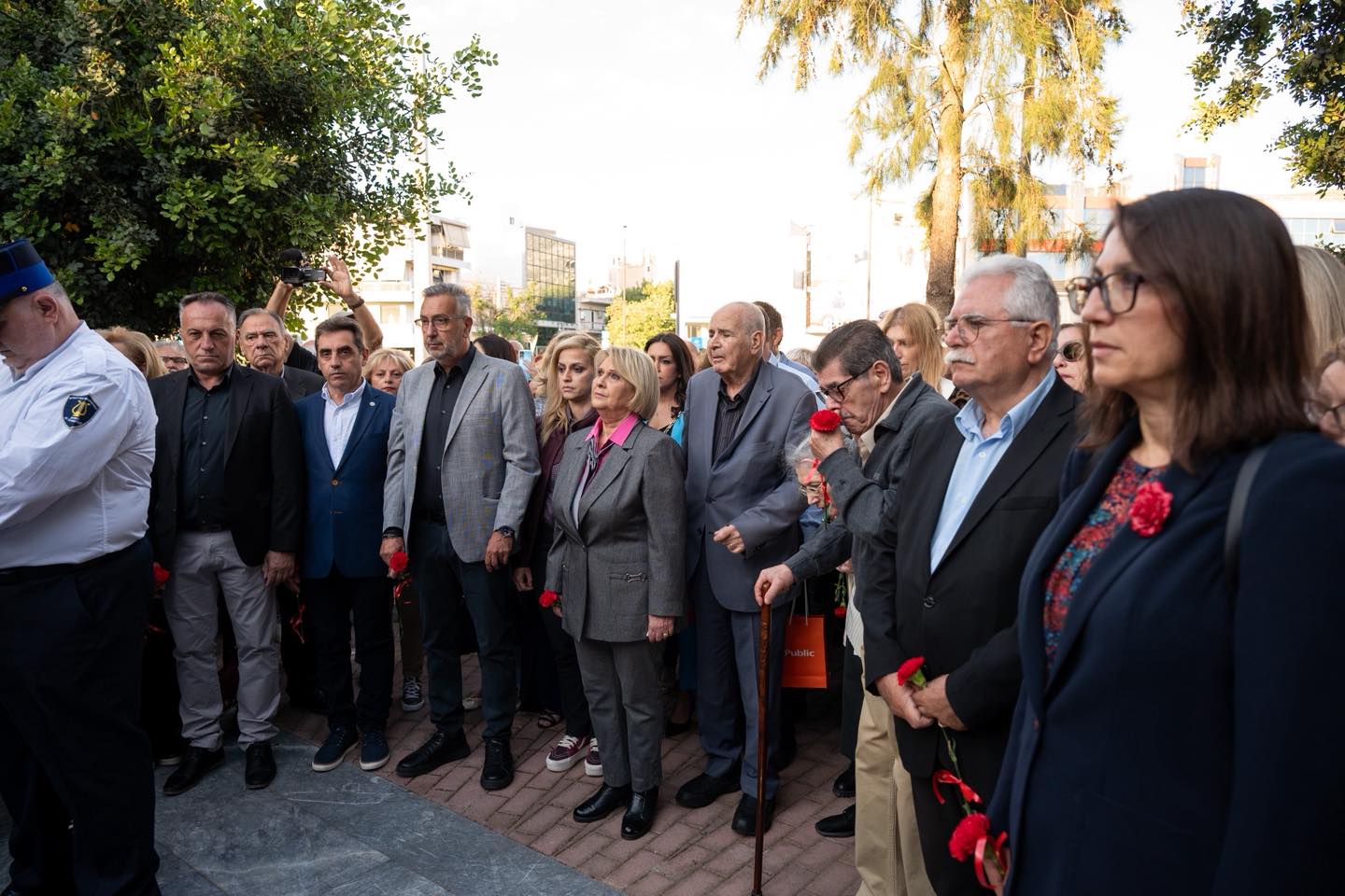Στο πολιτικό μνημόσυνο για τον Αλέξανδρο Παναγούλη, παρέστησαν σε κλίμα συγκίνησης: ο αδελφός του, Στάθης Παναγούλης και η Γραμματέας του αείμνηστου αγωνιστή, Ελένη Μπούρου.