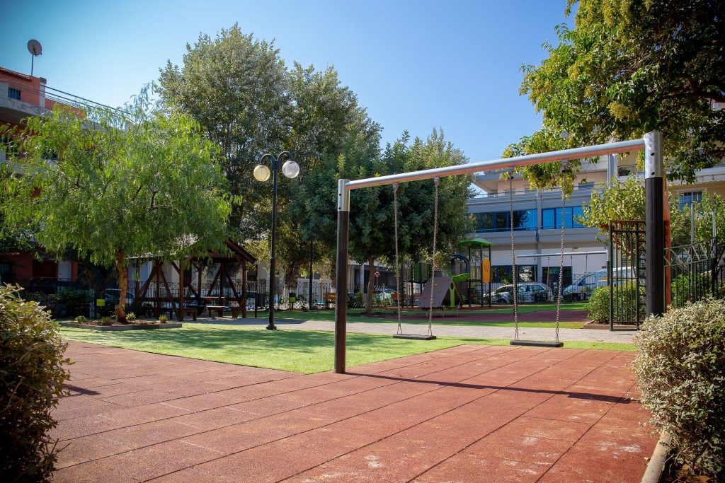 ⭐️ Η μία αφορά στην παιδική χαρά μεταξύ των οδών Παπαναστασίου – Νοταρά – Σεφέρη όπου τοποθετήθηκαν ολοκαίνουργια όργανα και παιχνίδια, που πληρούν όλες τις προδιαγραφές ασφαλείας βάσει νομοθεσίας και ανακαινίστηκαν τα ήδη υπάρχοντα. Ακόμη, δημιουργήθηκε μια καινούργια ξύλινη πέργκολα με παγκάκια.