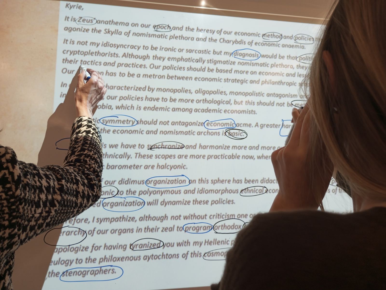 Το πρόγραμμα περιλάμβανε επίσης μια αναδρομή στην ιστορία και την εξέλιξη της ελληνικής γλώσσας. Οι μαθητές/-τριες αναζήτησαν τις ελληνικές ρίζες διεθνών λέξεων μέσα από την ιστορική ομιλία του Ξενοφώντα Ζολώτα, ενώ κατέθεσαν προσωπικές σκέψεις και κείμενα εμπνευσμένα από τη ρήση του Νίκου Καζαντζάκη: «Μια αστραπή η ζωή μας μα προλαβαίνουμε». Η βραδιά πλαισιώθηκε μουσικά με μελοποιημένη ποίηση των Σολωμού, Ελύτη, Σεφέρη και Βρεττάκου, ενώ η αυθόρμητη απαγγελία του Εθνικού Ύμνου από μαθητευόμενους ακόμη και των αρχάριων τμημάτων προκάλεσε ρίγη συγκίνησης.