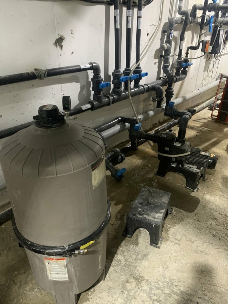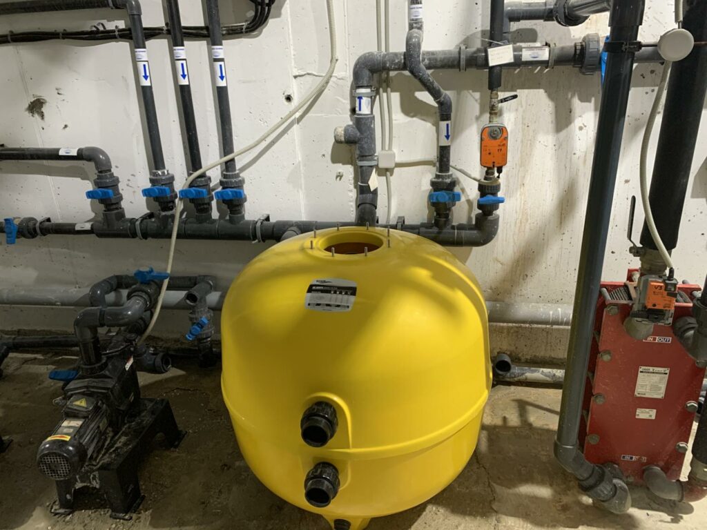 Οι εργασίες που γίνονται αφορούν στην αντικατάσταση του φίλτρου καθαρισμού του νερού, καθώς το προηγούμενο είχε υποστεί ανεπανόρθωτη ζημιά.