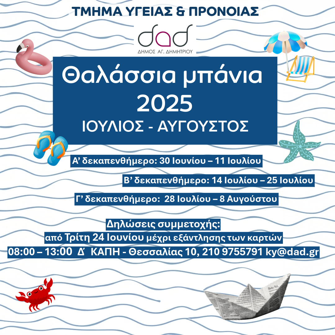 Από 24 Ιουνίου οι εγγραφές για τα Θαλάσσια Μπάνια 2025 του Δήμου Αγίου Δημητρίου