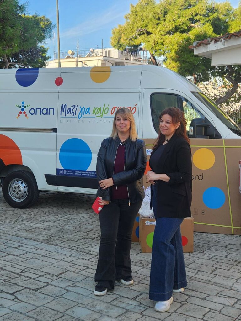Μια πολύ σημαντική συνεργασία για τα σχολεία του Δήμου μας εγκαινιάστηκε στο πλαίσιο της δράσης «ΟΠΑΠ – Μαζί για Καλό Σκοπό», μέσω του πρακτορείου της κυρίας Δήμητρας και της κυρίας Στεφανίας Μάκου, που συνέβαλαν στην ενίσχυση του 1ου Δημοτικού Σχολείου Αγίου Δημητρίου με σύγχρονο εκπαιδευτικό εξοπλισμό.