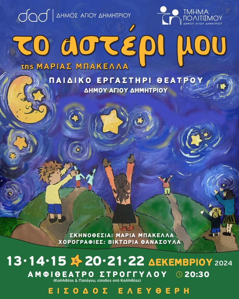 Την Παρασκευή 13 Δεκεμβρίου η πρεμιέρα της παράστασης «Το Αστέρι Μου» του Παιδικού Εργαστηρίου Θεάτρου του Δήμου Αγίου Δημητρίου