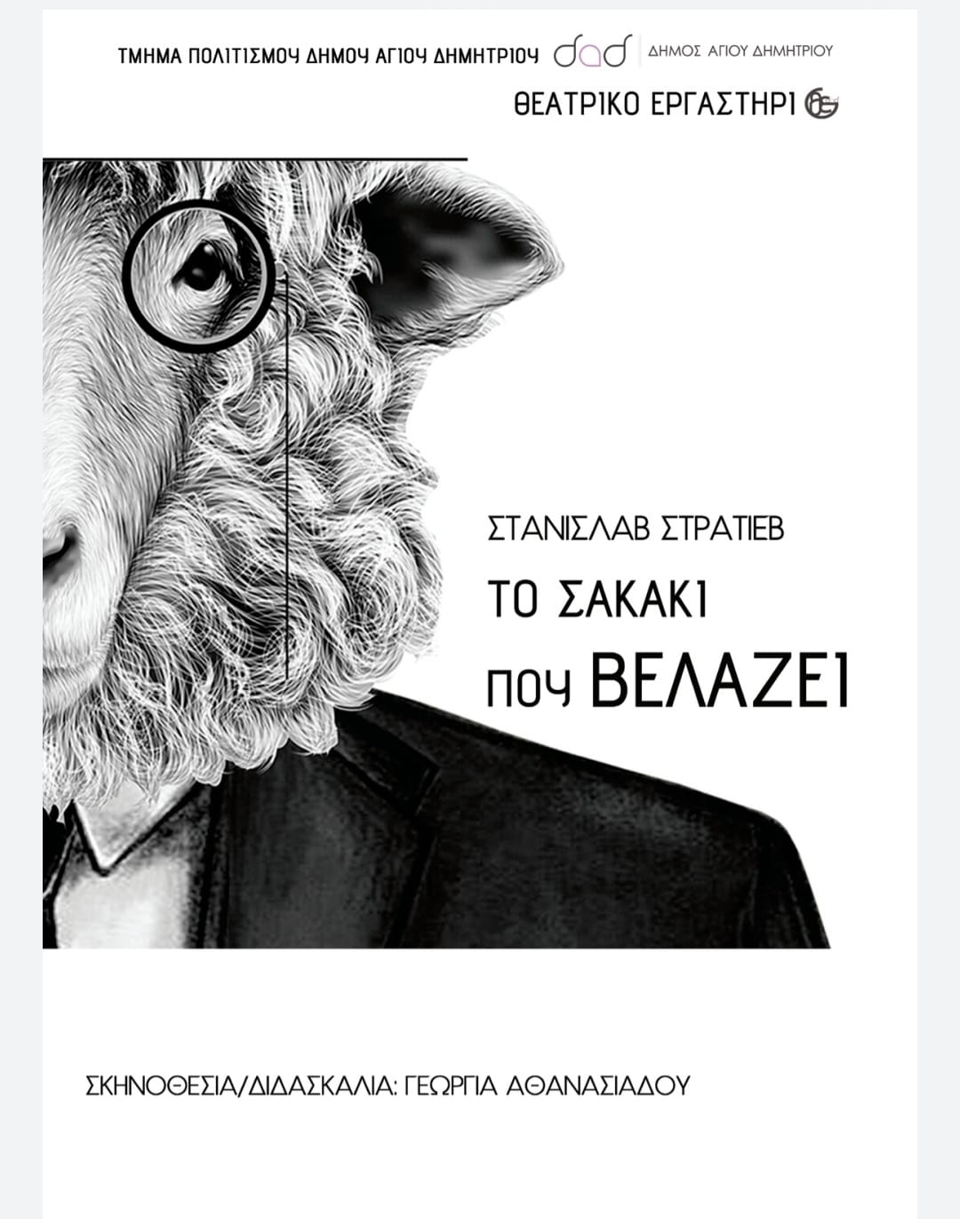 Μετά την μεγάλη επιτυχία του Θεατρικού Εργαστηρίου του Δήμου μας, τo έργο «Το Σακάκι που Βελάζει», του Στανισλάβ Στρατίεβ, επιστρέφει στο Δημοτικό Θέατρο Μελίνα Μερκούρη για επιπλέον παραστάσεις, για όσους δεν κατάφεραν αλλά και για όσους θα ήθελαν να το ξαναδούν.